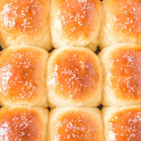These soft, buttery homemade dinner rolls warm out of the oven are life-changing! They are truly the BEST dinner rolls ever. I’d even go as far to call them perfect. 10 out of 10. This flavorful, melt-in-your-mouth buttery salted dinner roll recipe is gonna be the best roll you’ve ever tried.