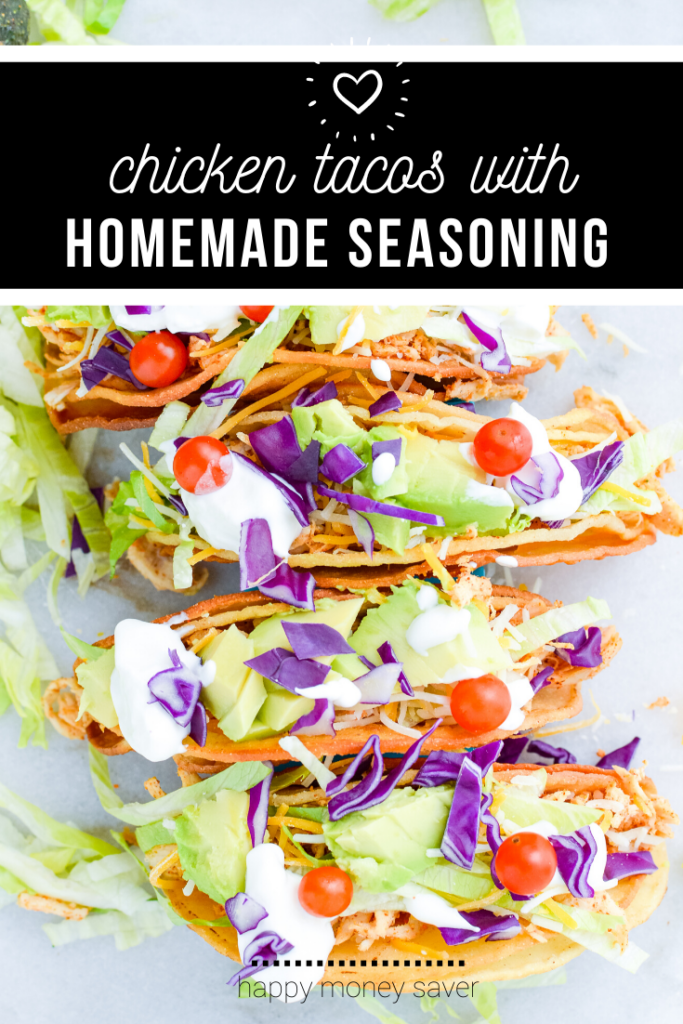 Easy Shredded Chicken Tacos are made with boneless/skinless chicken breasts, corn tortillas, shredded cheese, shredded lettuce, homemade taco seasoning, sour cream, salsa (and other taco toppings you like), and oil (olive, vegetable, or canola).