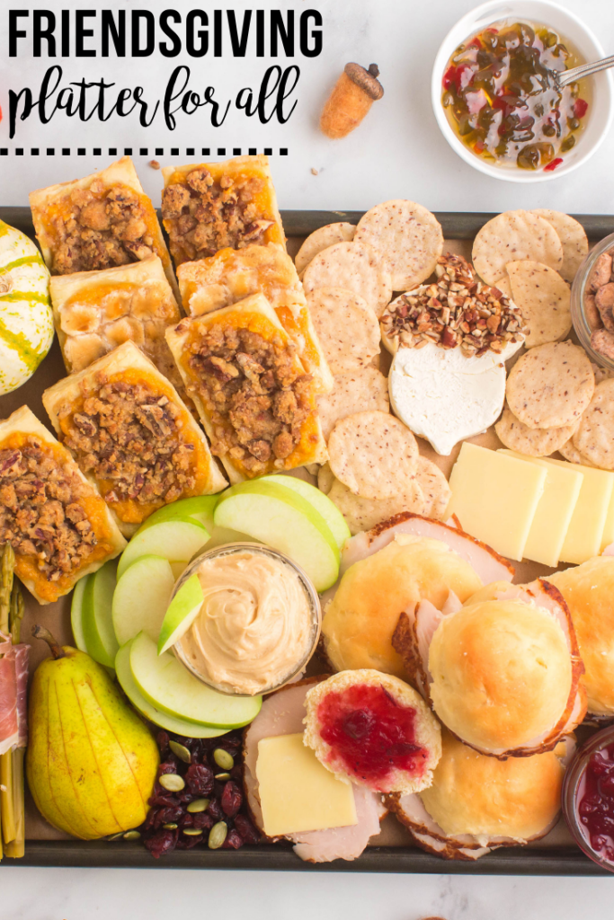 This tasty Thanksgiving Charcuterie Board features the best fall appetizers with mini sandwiches, fruit, cheese, and sweet treats to create the perfect snack or a light lunch. Best of all, nearly everything here can be prepared in advance, freeing you up to focus on the family dinner (or the Friendsgiving feast).